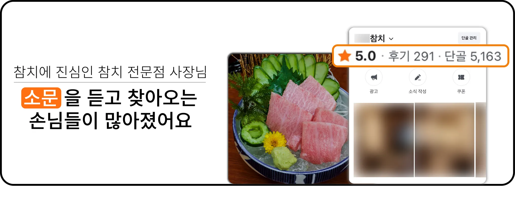 애드스페이스는 업주분들의 소중한 사업체를 다양한 플랫폼에서 우리만의 방식으로, 우리만의 상품으로 세상에 알릴게요. 그리고 보여줄게요.