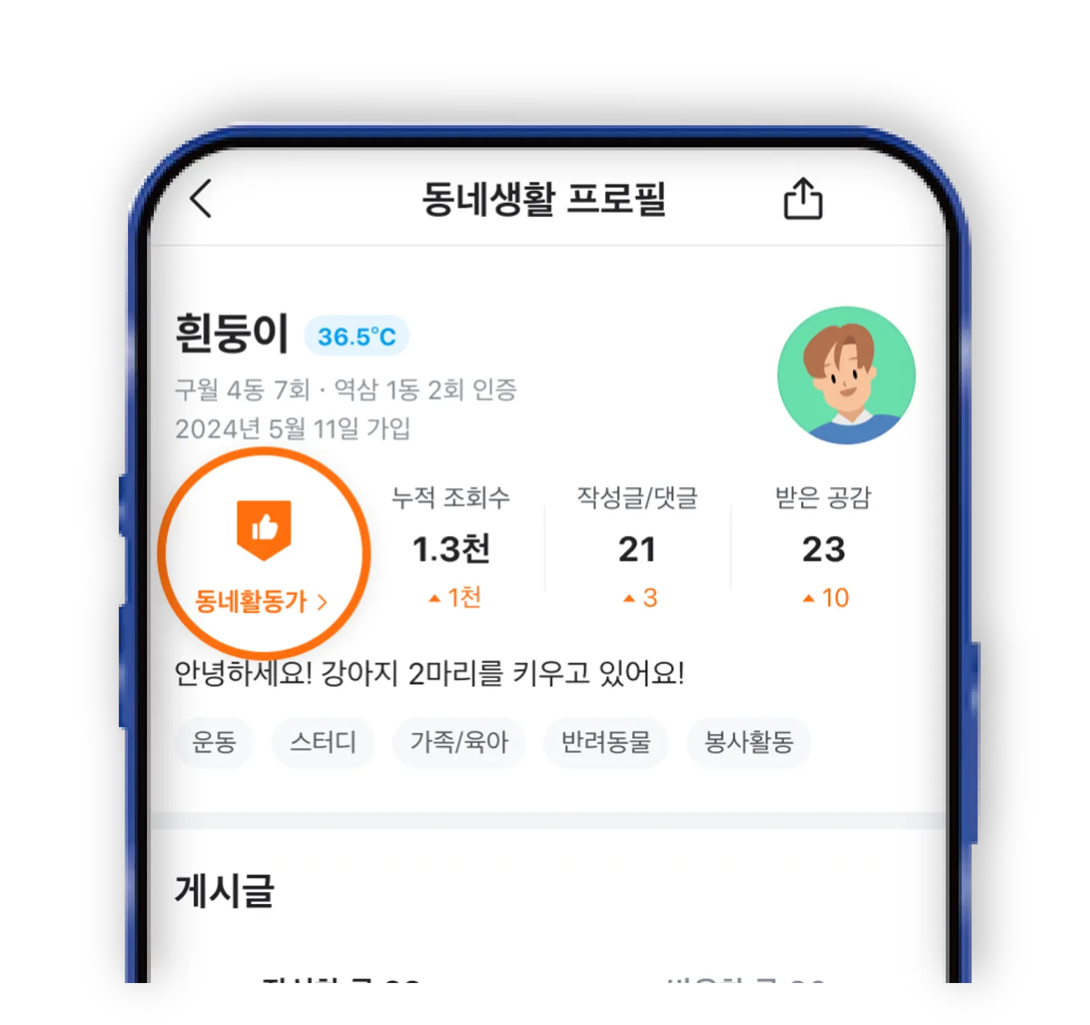 사용자들이 자주 방문하는 동네생활 탭에 게시되기도 합니다.