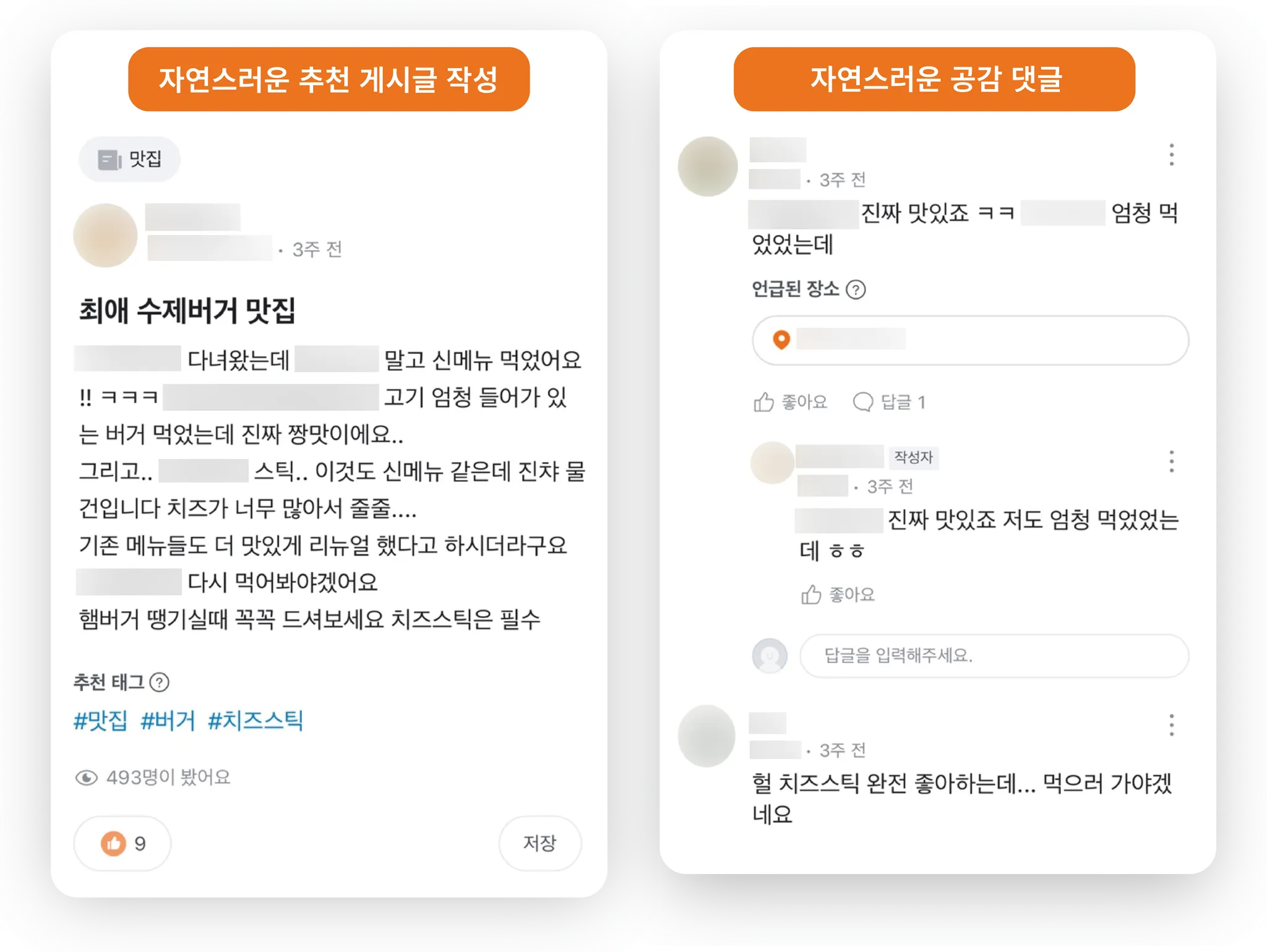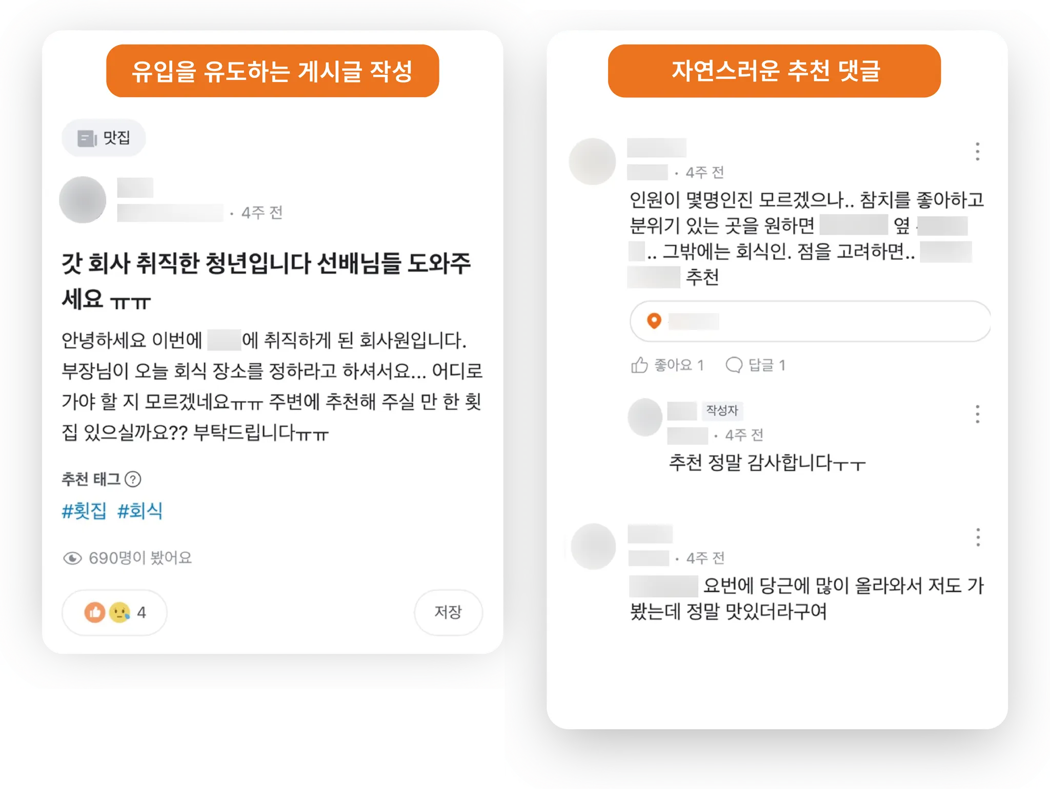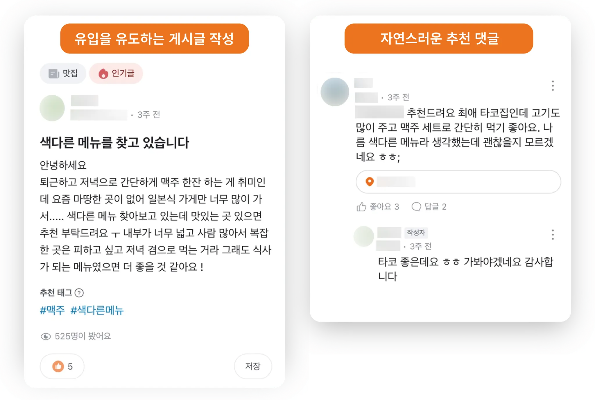 두 게시글 모두 맛집에 대한 추천 게시글이지만,